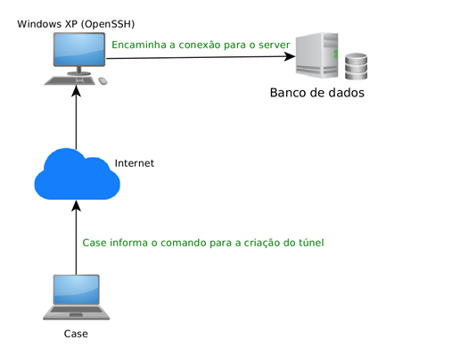 Mas qual o real motivo de querer instalar um servidor SSH no Windows XP? Simples. Case quer fazer um túnel SSH através dele (usá-lo como um tipo de ponte), e assim poder fazer mais testes de acesso nos servidores de banco de dados.